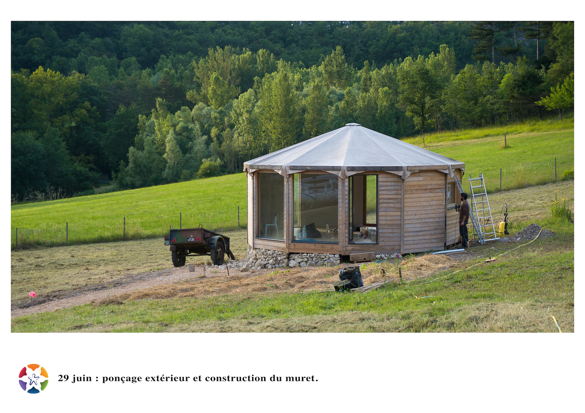 D’un autre côté, la partie « écovillage » du projet, a migré vers une autre commune, Trentels, accueillante et proactive pour co-construire avec nous le premier quartier rural en transition de France. Un terrain y a été acheté au bord du Lot. Le jardin permaculturel dudit quartier a été lancé il y a un an, et une longue gestation vient d’aboutir au lancement du chantier de notre Centre d’éco-construction, de recherche et de Formation, à partir duquel seront notamment construites toutes les autres structures du quartier rural. Là, sera le cœur de l’expérimentation du revenu d’autonomie de TERA, fruit des excédents des activités économiques et des revenus passifs qui y seront générés.